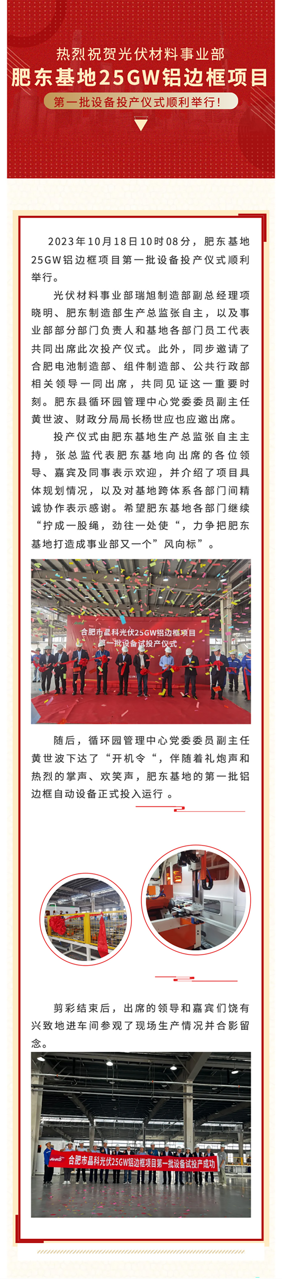 光伏材料事業(yè)部肥東基地25GW鋁邊框項(xiàng)目第一批設(shè)備投產(chǎn)運(yùn)行!