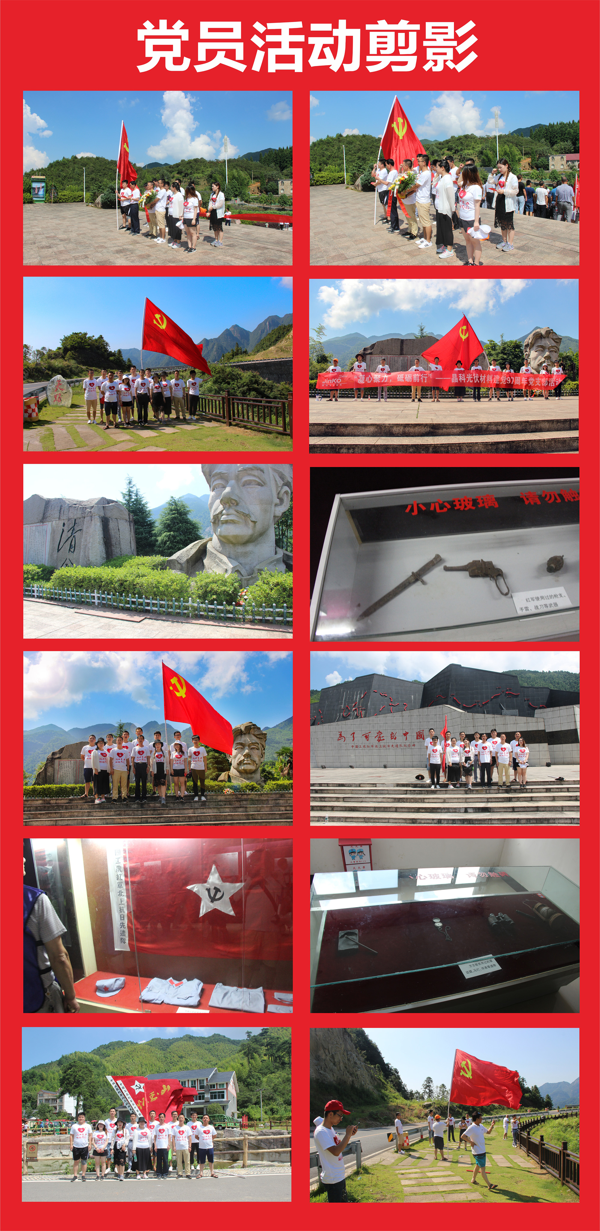 今年是中國共產(chǎn)黨成立97周年。值此建黨之月,晶科光伏黨支部開展了以“凝心聚力、砥礪前行”為主題的學(xué)習(xí)教育活動。7月28日,晶科光伏黨支部的黨員們懷著崇高的敬意,集體前往懷玉山愛國主義教育基地,舉行向烈士紀(jì)念碑敬獻(xiàn)花籃儀式,深切緬懷烈士的不朽功績,大力弘揚(yáng)烈士精神,表達(dá)凝心聚力、砥礪奮進(jìn)的堅定信心和決心。